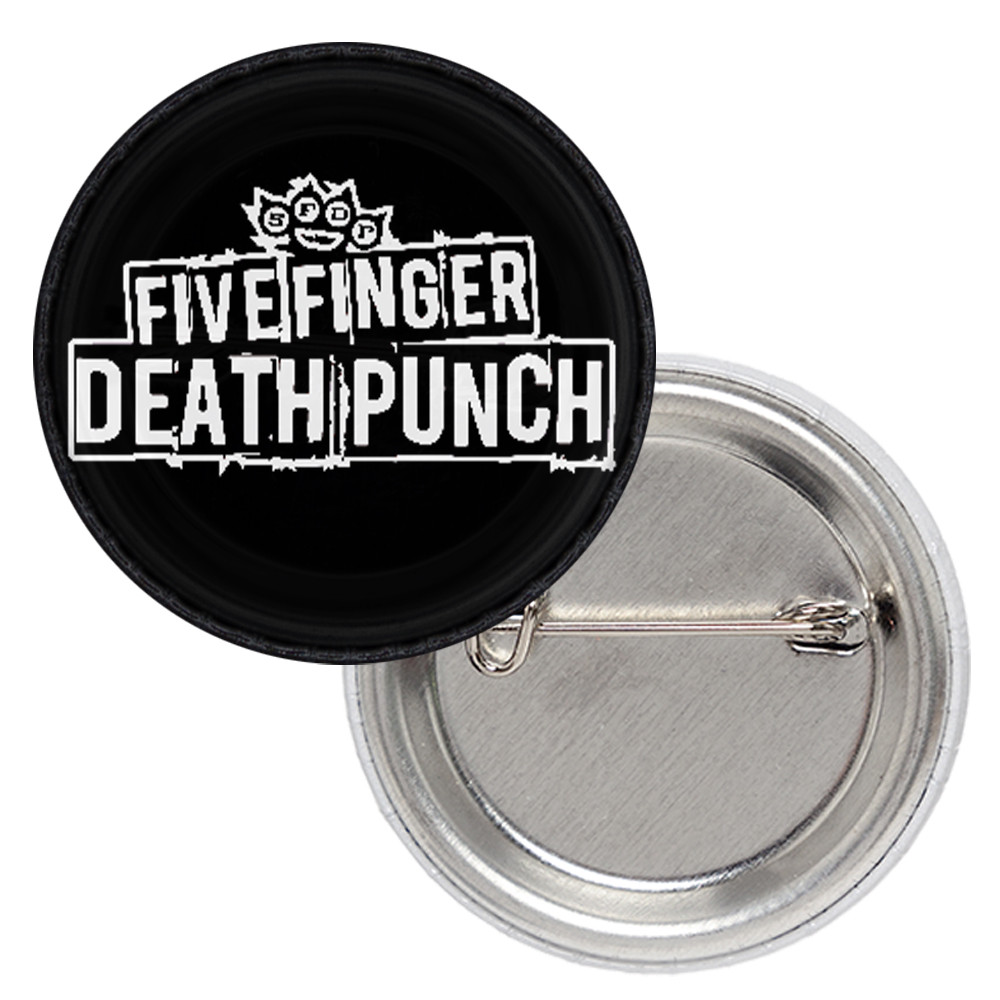 Значок Five Finger Death Punch (black background) Матеріал: Метал Діаметр: 25 мм Значок закатний. Виконано на металевій основі. Зображення покрито спеціальною щільною плівкою, яка захищає його від пошкоджень, вологи, а також стирання. Округла форма значка, метод виготовлення, а також покриття надають об'єму зображенню на значку.