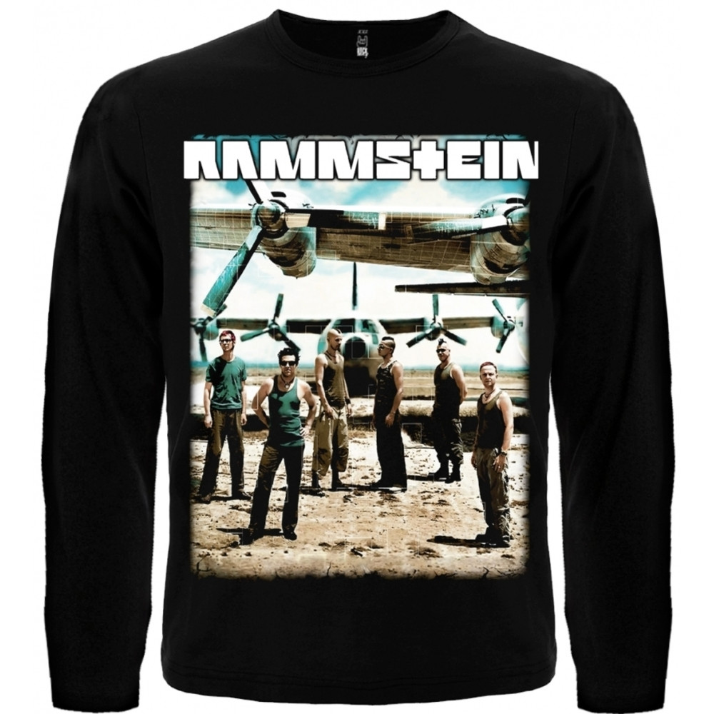 Футболка з довгим рукавом Rammstein (фото групи возле самолета) виробник: Rockway; тканина: 100% бавовна (якісні шви, горловина не розтягується); малюнок нанесений методом шовкотрафаретного друку (не тріскається, не псується внаслідок прання, не вигорає); малюнок: фарба пластизольна виробництва EU. Прати при температурі 30°